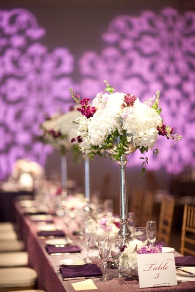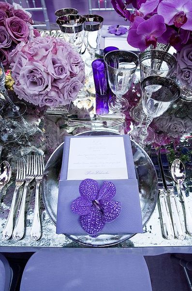 اللون البنفسجي يدل على الشخصية الحساسة والرقيقة، يعتبر الشخص الذي يميل الى هذا اللون صادقاً ومسالماً يبحث عن الهدوء في حياته،ويعرف معاني الجمال والرقة والإبداع. والعروس التي ترغب بإعتماد ثيم بنفسجي في حفل زفافها إمرأة حالمة تبحث عن التميز بأسلوبها الخاص يعكس الذوق الملكي والراقي، فهو مزيج بين اللونين الأحمر الدافئ والأزرق البارد. والبنفسجي الذي يتضمن اللون الأحمر بنسبة أكبر أي الداكن يعبر عن الأجواء الدافئة والمشعة، على عكس الذي يكون فيه اللون الأزرق مسيطراً أي البنفسجي الفاتح ، فهو يعبر عن الهدوء والرومنسية. لا تترددي في إعتماد هذا اللون فهو من اجمل الخيارات لتزين تفاصيل حفل الزفاف بكل فخامة.
